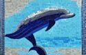 About A mosaic of a dolphin swimming in the marine ocean inspired by Charles Ginner