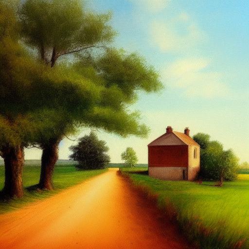 A painting of a country road and farmers