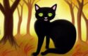 - “A painting of a creepy giant black cat” sets the tone and subject matter of the image, suggesting a dark and eerie atmosphere. This can be conveyed through the use of dark colors, shadows, and other design elements.