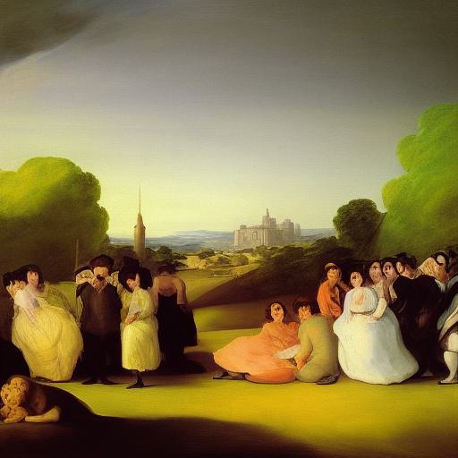 A painting of a group of couples having fun on the green land by Francisco de Holanda