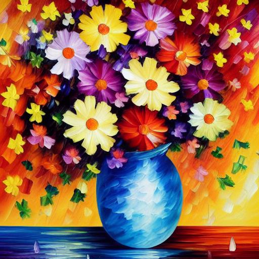 A painting of beautiful and colorful flowers in a vase on a table