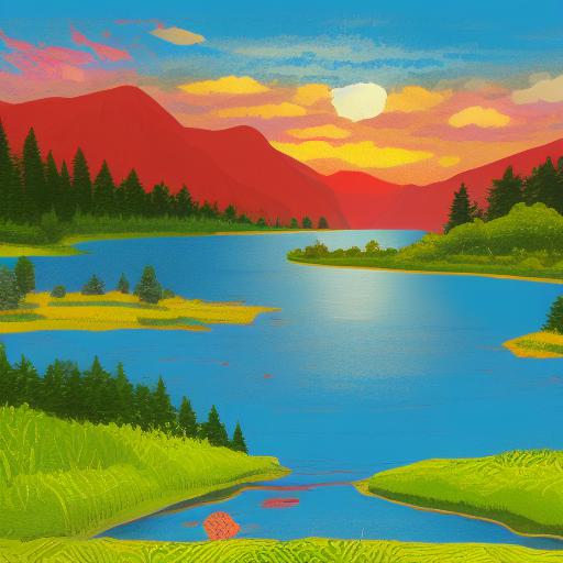 Firstly, the prompt specifies that the image should be a painting of a natural landscape with a lake. This provides a specific subject matter for the AI to focus on, and helps to guide the generation of the image. By specifying that the landscape should include a lake, the prompt creates a specific visual element that can help to anchor the image and provide a focal point for the viewer.
