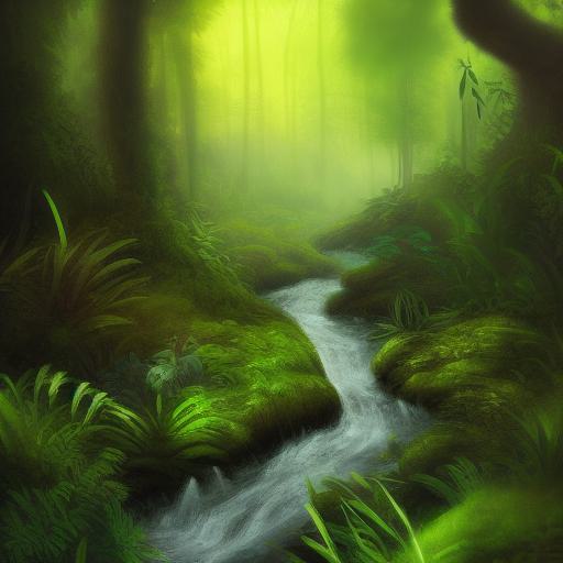 The first part of the prompt describes the main subject of the painting, which is “a stream running through a forest.” This provides a clear idea of the primary element that should be included in the image. The use of descriptive words such as “stream” and “forest” also provides more specific details about the landscape.