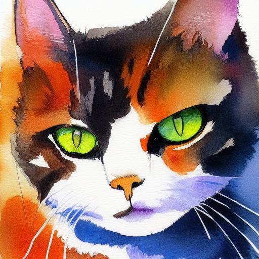 A watercolor painting of a cat with yellow eyes by Olga Boznańska