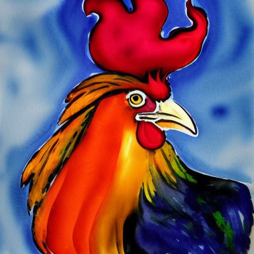 A watercolor painting of a rooster