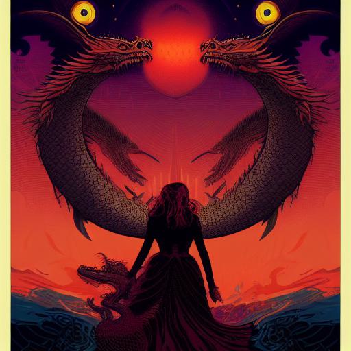 The AI image prompt features a woman meeting a dragon in a psychedelic art style. The prompt includes the artist and platform where the poster art was found, providing inspiration and a reference point for the image to be generated. The use of the keywords “woman” and “dragon” informs the AI of the subject matter, while the inclusion of “psychedelic art” gives a specific aesthetic direction for the image.
