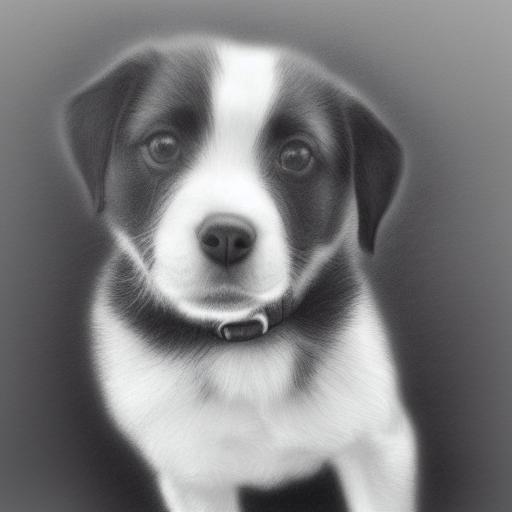 Black and white charcoal drawing of a puppy