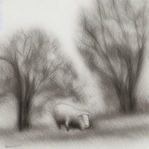 Drawing of sheep and trees in rural
