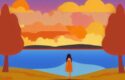 How to create a vector art illustration of a woman standing by a lake using Adobe Illustrator or other software?