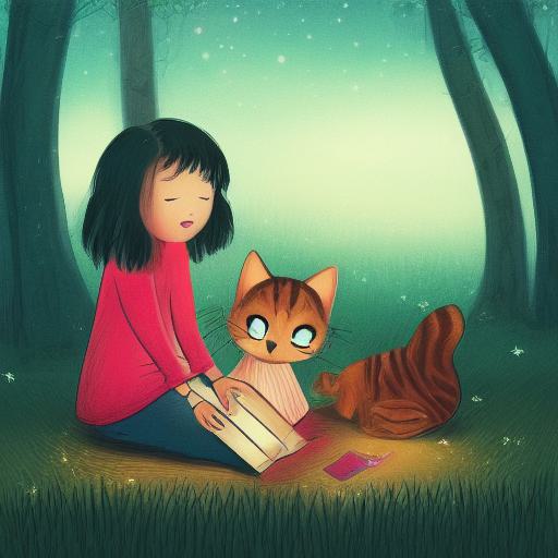 Girl sitting on the ground next to a cat