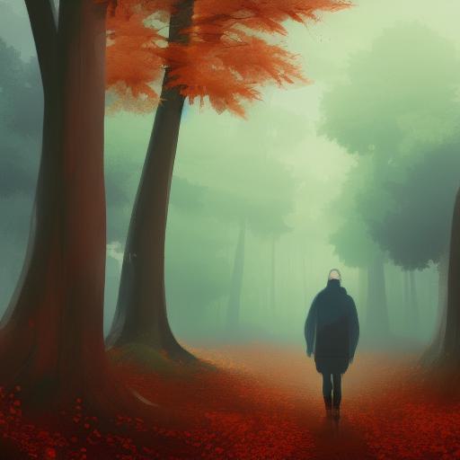 Melancholic digital art of a person walking through a forest