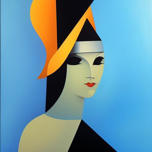 The choice of a woman as the central subject of the painting already provides a specific direction for the AI model, as the features and poses of a female model are different from those of a male model. Additionally, the use of Art Deco style influences the selection of colors, shapes, and patterns that would be used to create the painting. Art Deco is characterized by its bold, geometric shapes, vibrant colors, and stylized imagery, and all of these elements need to be present in the generated image.