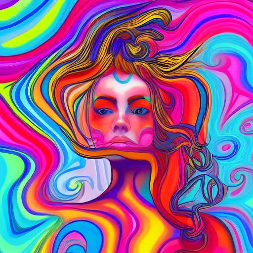 “Psychedelic painting of a woman” – This part of the prompt sets the overall theme and subject matter of the image. It tells the AI that the image should be a painting featuring a woman, and that the style should be psychedelic.