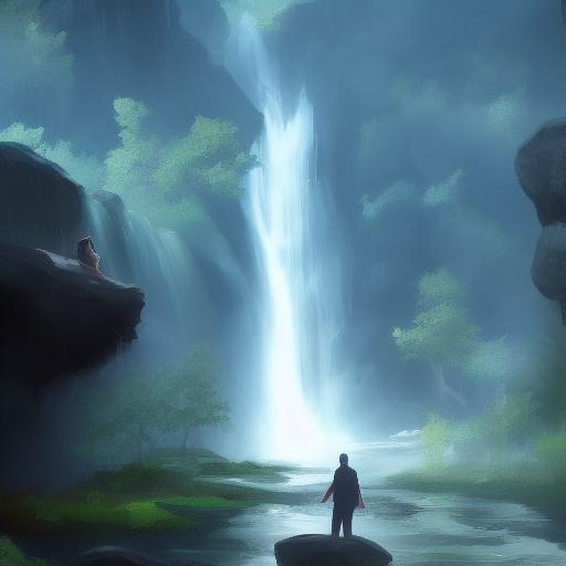 The painting of a man standing near a waterfall