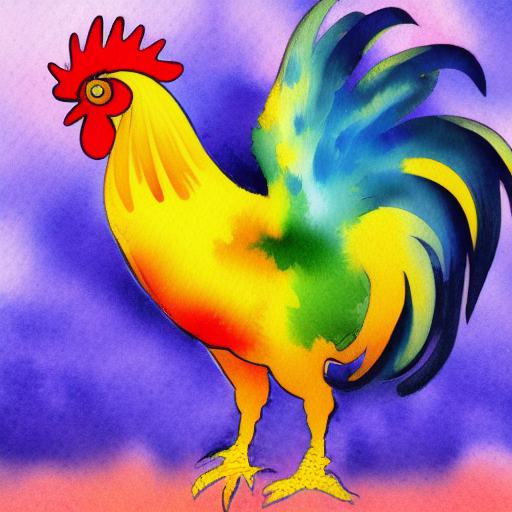 The watercolor painting of a rooster