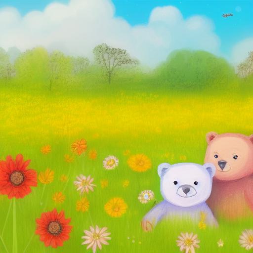 Two bears in the flower field